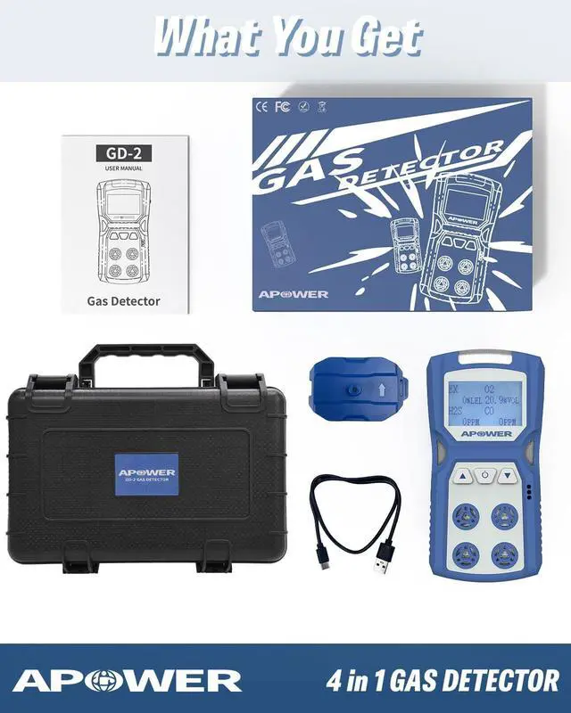 - What You Get: 1x GD-2 gas detector, 1x user manual, 1x Type-C charging cable, 1x standard gas hood, and comes with a delicate package box. We stand behind our products and provide a 36-Month after-sale service. If you are unsatisfied with our products, please feel free to contact