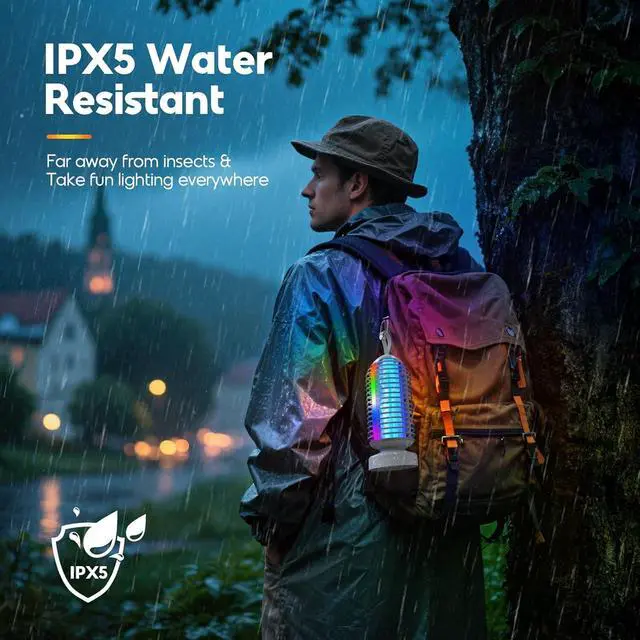 SMALL BUT EFFECTIVE, 3000V HIGH-VOLTAGE! - Featuring the enhanced 365-395nm bright blue-violet light lures mosquitoes and flying insects in, 3000V high-voltage electric grid will takes care of the rest. So you don't have to put up with the smell of sprays, insecticides and attractants, great for those who always have fruit and regular fly problems in the house during the summer and this is going to be a great way to deal with that(Tips: Works better at night and in dark environments)falseSMART AUTO MODE, POWERED BY A 4000MAH SUPER BATTERY - The smart day & night sensor supports to turn on at dusk and switch to sleep mode at dawn via pressing the auto mode button, saves your money, just set it and forget it! Also this rechargeable bug zapper comes with 4000mAh battery, provides up to 16 hours of continuous use on a single charge via Type-C USB (fully powered in just 3 hours). Easy to use and maintance, being able to clean the bugs out using water if don't want to mess with a brushfalsePORTABLE, LIGHTWEIGHT, IPX5 WATERPROOF - This fly zapper is wireless and compact enough to move between rooms, it comes with a rubber hook a hang just about anywhere - from ceiling to tent poles. The IPX5 waterproof design ensures it can withstand the elements, making it a reliable companion for any outdoor adventure. A very useful tool when go camping, both in dealing with bugs inside the tent and its usefulness as a lantern because of the other light functionsfalse