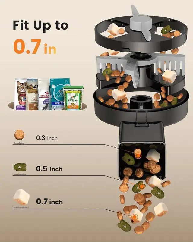 - Larger Kibbles: Suitable for large grain cat food, compatible with cat food and cat snacks up to 0.7 inch (18 mm).