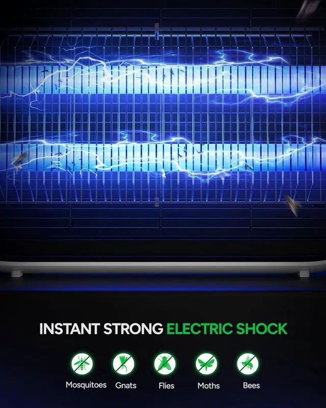 High-Efficiency Indoor BugZapper: The 20W lamps of this bug zapper emit light to attract mosquitoes, flies, fruit flies, moths, wasps, etc. When the power grid comes into contact with flying bugs, it will release a high voltage, quickly electrocuting the attracted flying bugs to death. To get a better attraction effect, it is recommended to use the mosquito zapper at night or in a dark environment.