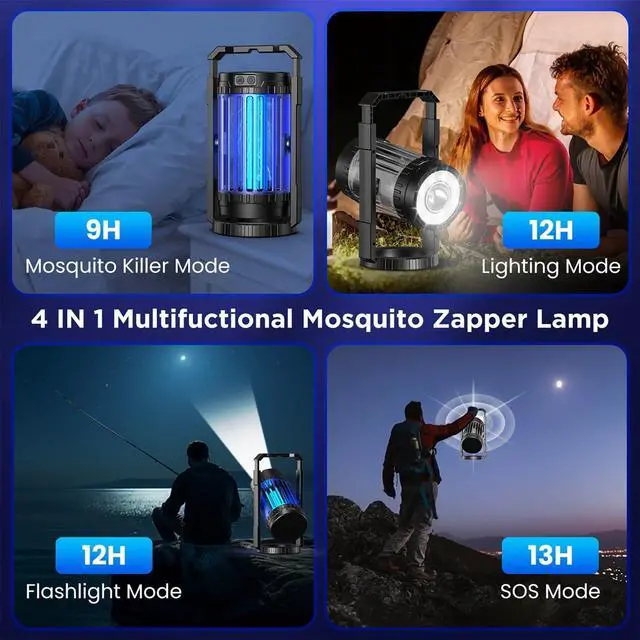 Powerful Bug Zapper: This indoor and outdoor Bug Zapper provides 4 zapper modes: the mosquito killer mode can effectively remove flying insect bites, the white light mode and spotlight mode can meet different lighting needs at night; the SOS mode can send out emergency signals in dangerous situations such as outdoor adventures and natural disasters. It is a must-have artifact for outdoor activities