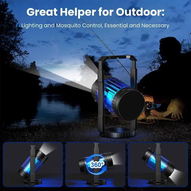 - 360-degree rotation & multiple angle options: The unique and innovative fly trap supports 360-degree rotation. You can adjust the angle as needed and turn it to where there are many mosquitoes. It can take into account both lighting and mosquito killing needs, providing a pest-free environment for every family camping out