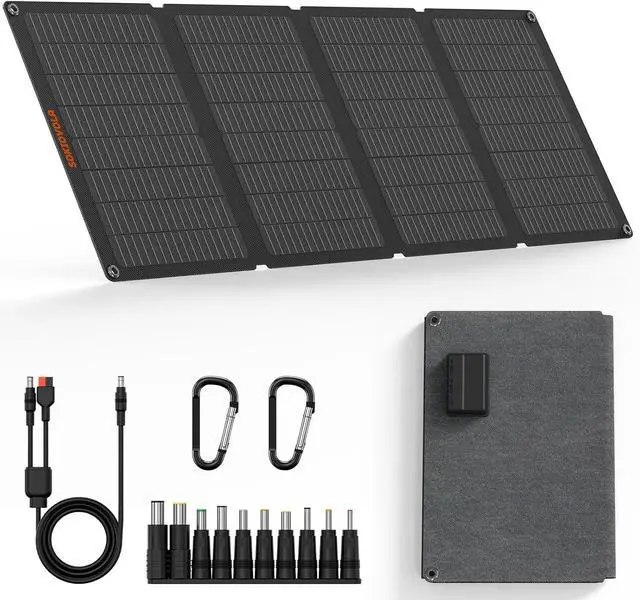 High Conversion EfficiencySOKIOVOLA 50W Portable Solar Panel adopts A+ Grade 16BB solar technology, with a conversion efficiency of up to 25%. NextGen N-Type solar cell technology not only improves the conversion efficiency and charging speed of the panel, but also enhances its stability and durability. The panels are coated with high-transmittance ETFE material and have a slightly convex surface that increases the contact area with the sunlight and improves the energy conversion rate. falsePackage and SupportYou will receive SOKIOVOLA 50W Foldable Solar Panel Charger x1, Mountaineering buckle x2, 39.37 inches DC5521 to DC 5521, Anderson Connect x1, 10 Adapters x1, User's Guide x1, We also provide 12 months warranty from the date of purchase to ensure that you receive prompt support and repair services during use.
