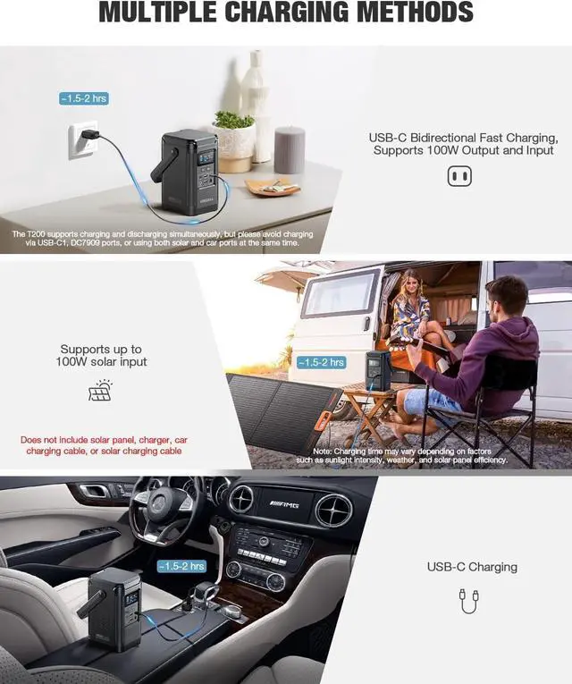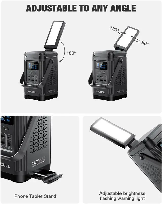 - [SMALL BUT POWERFUL] This battery generator is ideal for outdoor activities like camping and hiking, as well as emergency backup power at home. This portable charging station features an adjustable LED light, a built-in phone stand, and offers SOS and three lighting modes to provide reliable lighting and support in any situation.