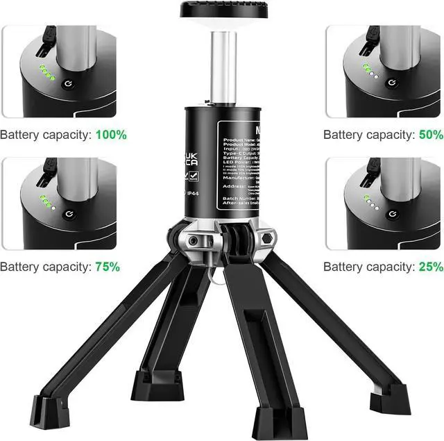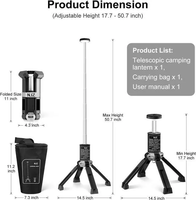 - Adjustable Height and Compact Storage: This rechargeable work light features a telescopic design with an adjustable height range of 17.7 to 50.7 inches, making it flexible for various lighting needs. When not in use, it can be collapsed to a compact storage size of 4.3 x 11 inches, making it easy to carry and store