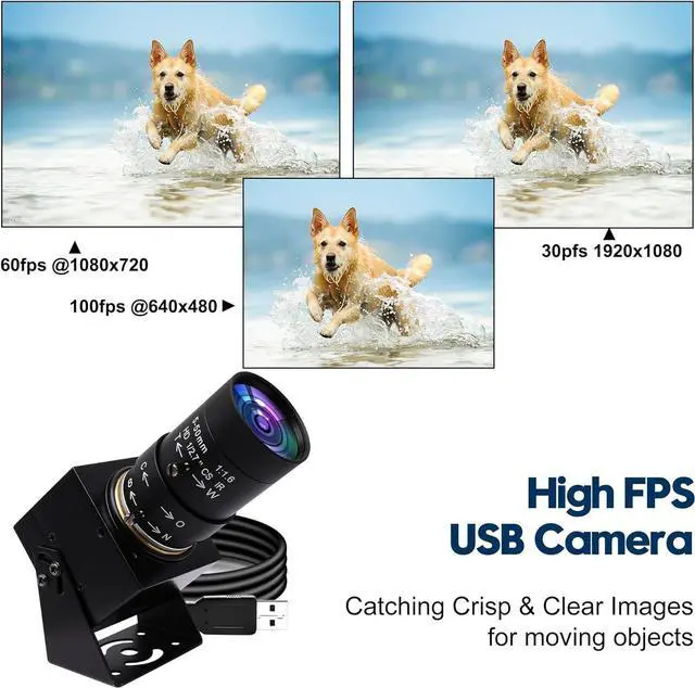 - High Frame Rate: USB camera with high frame rate 1080P 30fps per second, 720P 60fps per second, VGA/480P 100fps per second. Deliver smooth pictures while catching up moving objects. Great for video calling, streaming, studio recording and for Raspberry Pi. High speed USB 2.0 webcam output format support MJPEG/YUY2