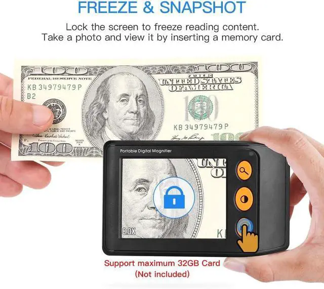 - 8 Color Modes: Choose from full color, black and white, black on white, white on black, blue on white, white on blue, yellow on blue, and blue on yellow. Multiple color modes are available to suit your vision needs
