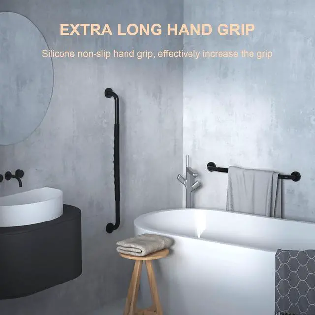 Not only apply to use as shower grab bar, but also can hold clothing, towel and etcThe total length is 32 inch. 1.25 inch bar diameter allows enough space to easily grip for added support ZUEXT 32-Inch Concealed Mount Safety Bath and Shower Grab Bar; false- ZUEXT 2 Pack 32 Inch 1.25" diameter SUS304 Stainless Steel Oil Rubbed Black Shower Grab Bars with non-slip soft rubber grip; Our anti-slip shower grab handle bar features a convenient design, it come with the mounting screws and anchors for easy installation.