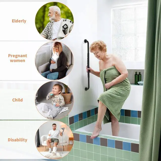 - Use safety anti-slip soft grab bars in the bathroom, kitchen, along stairways, or in the laundry room for additional fall prevention, especially for the handicap, elderly, pregnant women, and children. Not only apply to use as shower grab bar, but also can hold clothing, towel and etc.