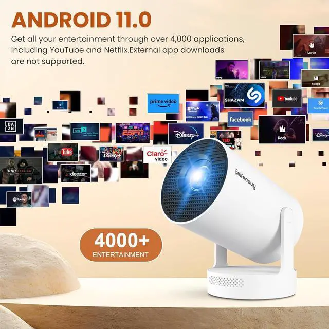 - Built-In Android 11 with Preloaded Netflix: This small projector runs on Android 11 and comes with Netflix preinstalled. No need for extra devicesstream your favourite content wirelessly, turning it into the perfect movie projector for bedroom use