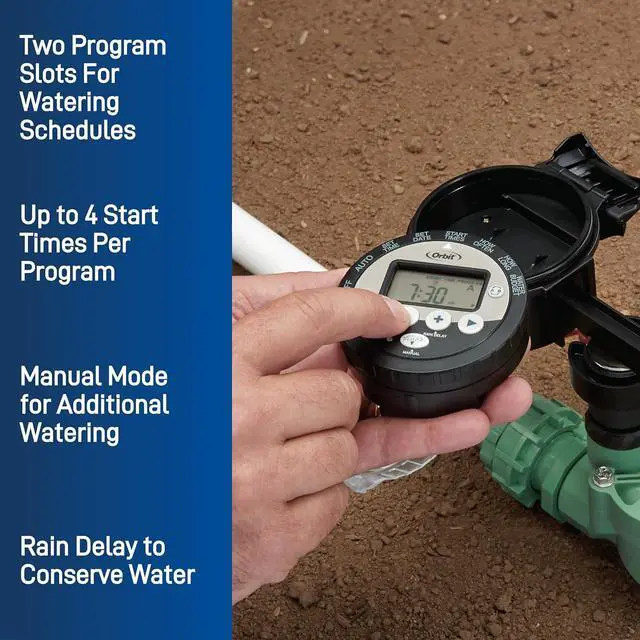 recommend our recommended fittings: 1-inch MPT PVC-Lock for PVC pipes or Blu-Lock for poly pipes. Upgrade your outdoor irrigation system with this dependable, efficient, and technologically advanced battery-powered sprinkler timer. Say goodbye to tedious manual watering and hello to a lush, healthy lawn. Experience the convenience of our innovative water timers for garden and yard. Order now and enjoy the benefits of a smart, automated sprinkler system.