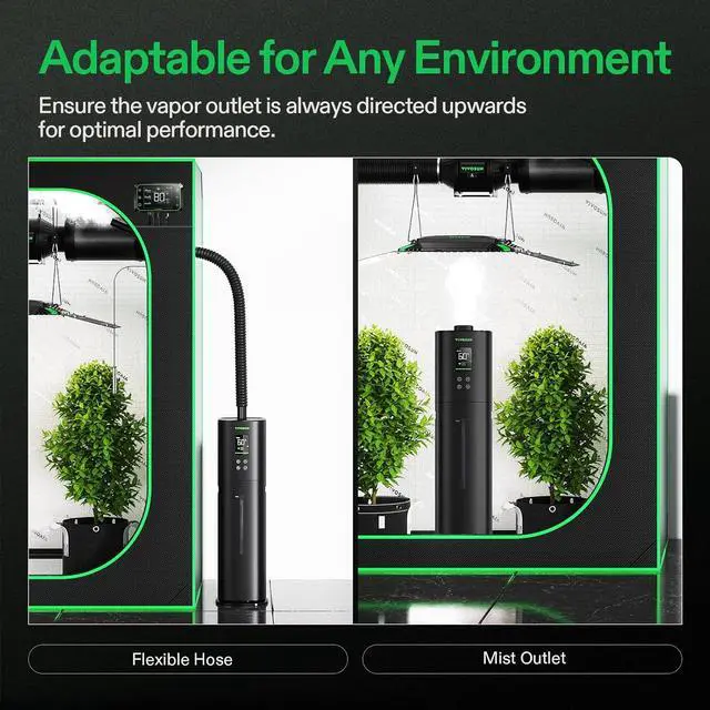 Applications: Includes a vapor outlet and flexible hose, allowing the humidifier to be placed inside or outside the grow tent and adapt to any environment; Perfect for grow tents, grow rooms, terrariums, living rooms, bedrooms, and morefalse-