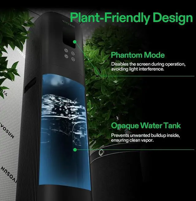 - Plant-Friendly Design: Phantom mode disables the screen during operation, avoiding light interference that could disrupt plant growth; The opaque water tank prevents unwanted buildup inside, ensuring clean vapor for your plants