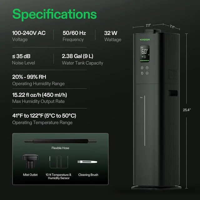 Superior Humidity Control: This advanced ultrasonic humidifier delivers whisper-quiet, precise humidification with 1% humidity resolution; A highly sensitive external temperature and humidity probe provides accurate environmental readings, enabling quick adjustments