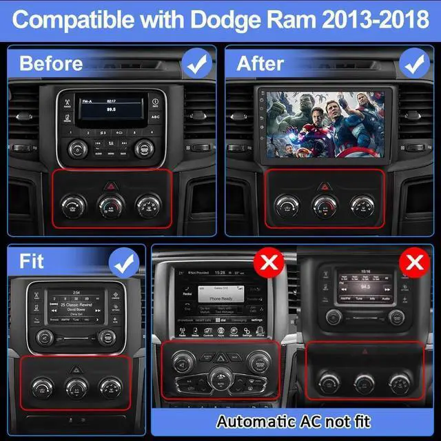 - Wireless CarPlay & Android AutoFor Dodge Ram 1500 radio. Simply connect your phone to your Android car radio via Wifi and Bluetooth, and you'll be able to access your phone's apps directly from your car stereo. Use smart voice assistant or touch the display, you can get directions, make calls, send and receive messages, and enjoy music etc. A smarter, safer and more fun way to use your phone in the car, and keep you stay focused, connected and entertained.