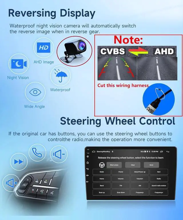 - Rear Camera SWCScreen for 2008 Honda Odyssey support rear view camera image input, The camera provided by the car radio is AHD pixel type, you have to choose AHD pixel. (Settings - Factory Settings - Video Source Settings - AHD). car stereo support Steering wheel control fnction, Through it you can control the functions you need by steering wheel, more convenien