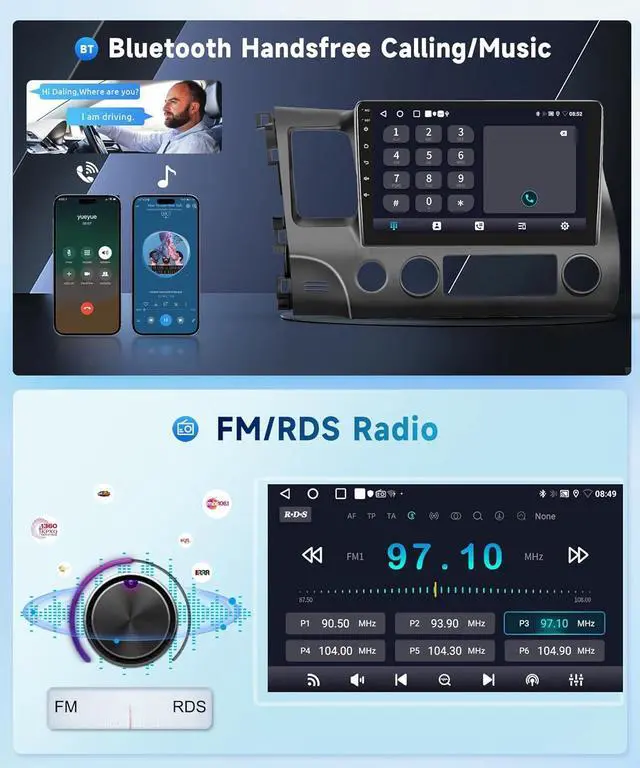 - HiFi Audio: The car play radio for Honda Civic equipped with high fidelity HiFi technology and 16-band EQ options, which aims to capturing the nuances and details of the original recording with exceptional clarity and accuracy, providing an immersive and authentic listening experience