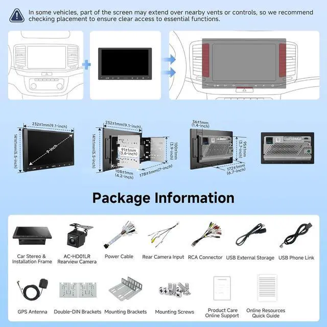 - Practical Accessories: A5L double din radio includes AHD 720P AC-HD01LR rear-view camera offers a 140° field of view, waterproof, night vision, Backlight Compensation (BLC) and Live Real View (LRV), aiding in parking convenience and area m0nit0ring