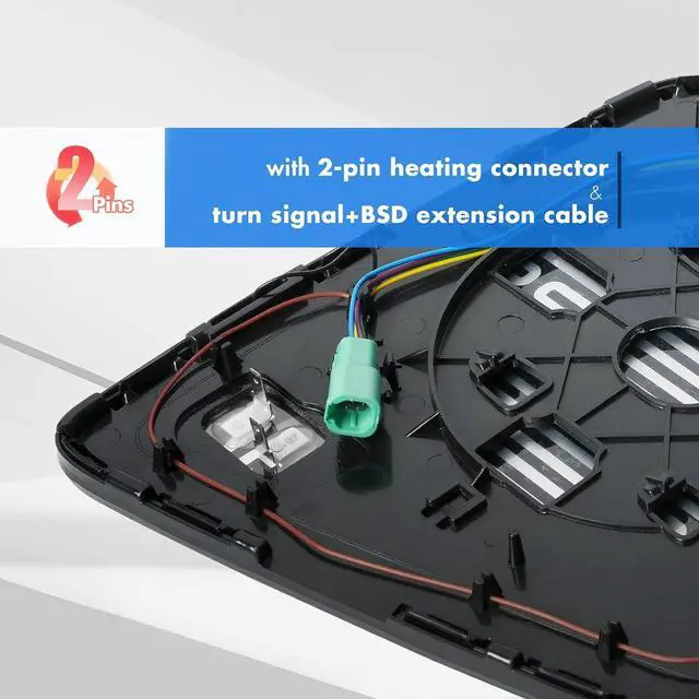 - 7-pins Platinum versionRight side replacement mirror glass for Platinum version, 7-pins plug with wiring socket, power heated, with arrow turn signal light, blind spot monitoring, but without auto dimming
