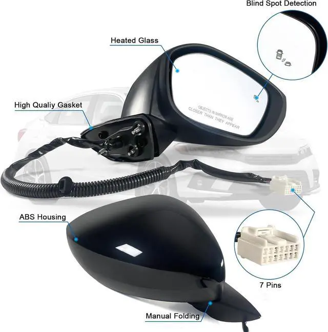 - Features: Door Mirror With Power Glass, Heated, Blind Spot Detection and Manual Folding Match to Crystal Black Pearl
