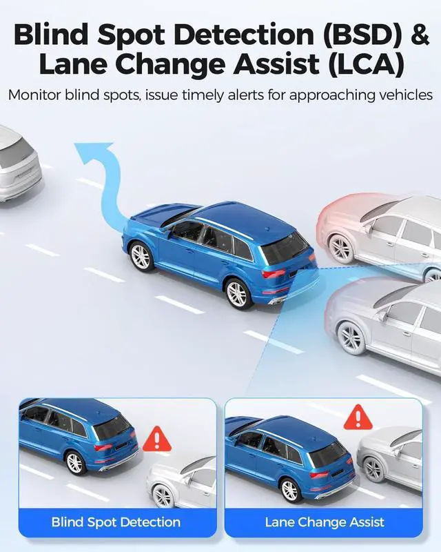 - [Enhanced BSD & LCA] Monitors the blind spots on the sides and rear of the vehicle, alerting you to potential rear-end collision risks and enhancing your safety while changing lanes. PG17 Max rearview mirror dash cam provides comprehensive protection on the road