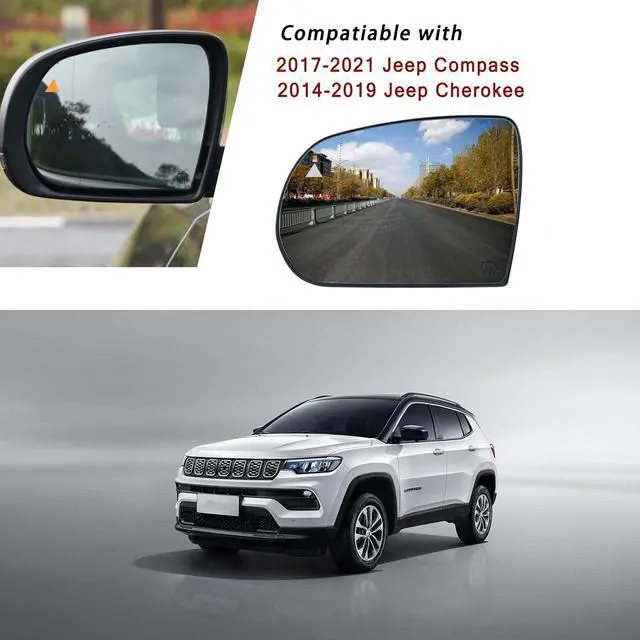 Compatibility: For jeep cherokee driver side mirror compatible with 2014-2019 Jeep Cherokee 2017-2021 Jeep Compass. Please find the detailed fitment information on the photo and product detail part.