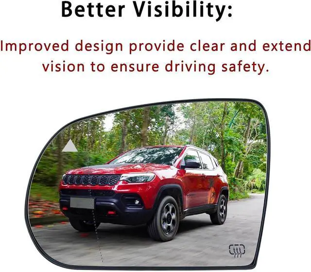 - Better Visibility: The quality of the back plate and replacement for jeep cherokee mirror is top rated. Made of high quality ABS plastic, firm and not deformed, waterproof, rust resistant and the glass will not haze. Accurately designed to match the features of your original replacement for jeep compass mirror.