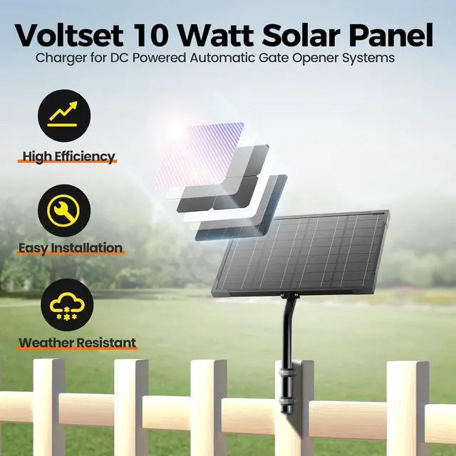 Superior Quality and EfficiencyThis 12V monocrystalline solar panel has an effective conversion rate of up to 24%. Made with premium Grade A+ solar cells, it features tempered glass and a durable, corrosion-resistant aluminum frame. Designed to withstand extreme weather, including UV, rust, erosion, hail, and sandstorms, it can handle up to 2400Pa wind pressure and 5400Pa snow load. Easy installationThe tubular bracket ergonomic structure design makes it easier to mount the gate solar panel, you can quickly install the solar panel charger on the fence post. The metal frame protects the solar panel from damage, and the four corners have protective covers to prevent injuries from collisions with people during installation.