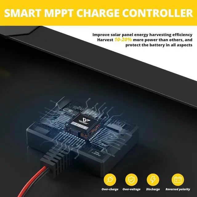 12-Month WarrantyVOLTSET provides 24-hours professional customer service and 12-month warranty. If you have any questions, please contact us. We appreciate to improve from your suggestion. - Intelligent MPPT Charge ControllerThis 12V solar trickle charger features an advanced built-in smart MPPT charge controller. The 12v mppt solar charge controller offers 25%-30% higher charging efficiency than standard controllers. Its intelligent design ensures fast, safe, and stable charging, preventing overcharging, over-discharging, over-voltage, and short circuits.
