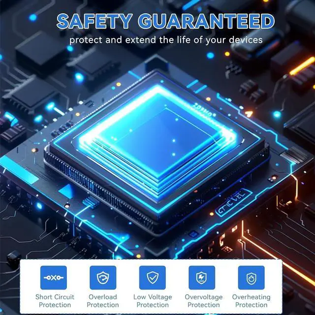 - Intelligent Protection System: Built-in intelligent chip protects the inverter, electrical equipment, car battery, etc. There are over-voltage protection, overload protection, over-temperature protection, under-voltage protection, and short-circuit protection. When you see the indicator light shows red, don't be anxious, this is the protection mechanism is activated.