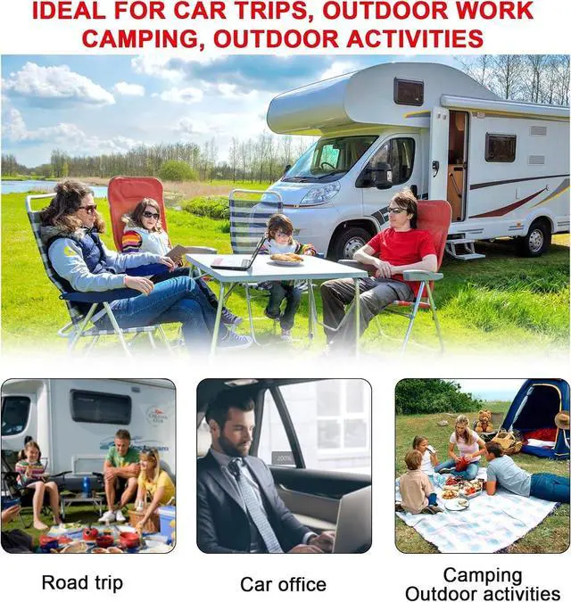 - Ideal for Road Trips: Can be connected to the power supply using a cigarette lighter (less than 150W) or cables. The USB-A ports are suitable for charging devices such as Kindles, smartphones, iPads, tablets, cameras, and AirPods. The AC outlets provide a reliable power supply for appliances requiring 900W to 1000W, including laptops, DVD players, breast pumps, bottle warmers, and other similar devices.