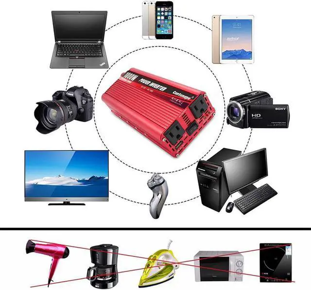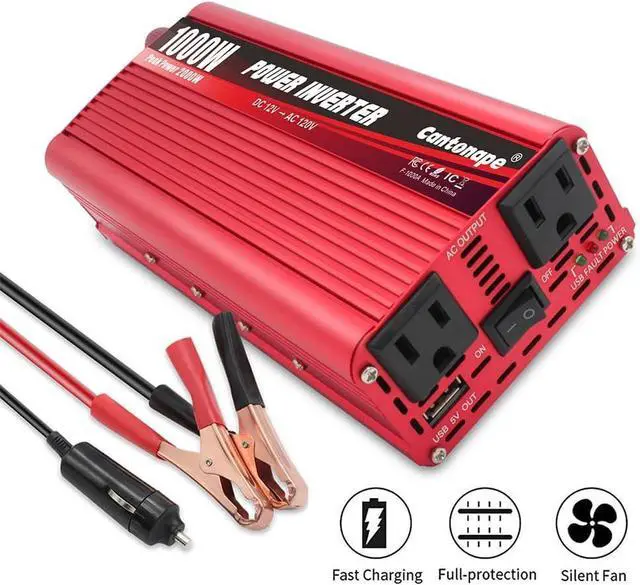 POWERFUL OUTPUT: Convert power of DC 12V to AC 110V/120V 60Hz. Provides 1000 Watts continuous modified sine wave power and 2000 Watts peak power. Featuring 2 AC outlets and 1 USB ports for multi-purpose charging.