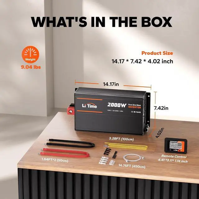 New Upgraded Inverters for 2025: Experience the next level of power efficiency with the New-Upgrade LiTime 2000W Pure Sine Wave Inverter. The new 2000W inverter adds USB-A, USB-C output ports, AC Outlets and a remote LCD display for real-time monitoring of input and output information such as battery voltage, load power, temperature, and more.