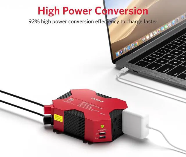 Vansoet Advantage: power inverterProvides 500W continuous DC to AC power and 1000W instantaneous power, featuring 2 AC outlet and 4 USB charging ports. Durable metal housing provides advanced protection from drops and bumps.