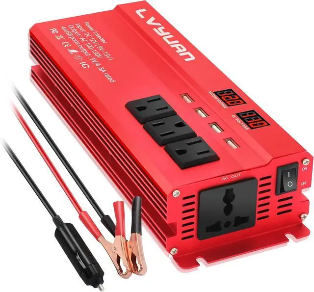 POWERFUL OUTPUT: Convert power of DC 12V to AC 110V/120V 60Hz. Provides 1000 Watts continuous Modified Sine Wave power and 2000 Watts peak power (less than 1 second). Featuring 3 US standard outlets, 1 universal outlet and 4 USB ports for multi-purpose charging.