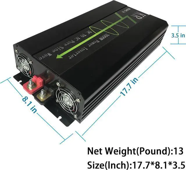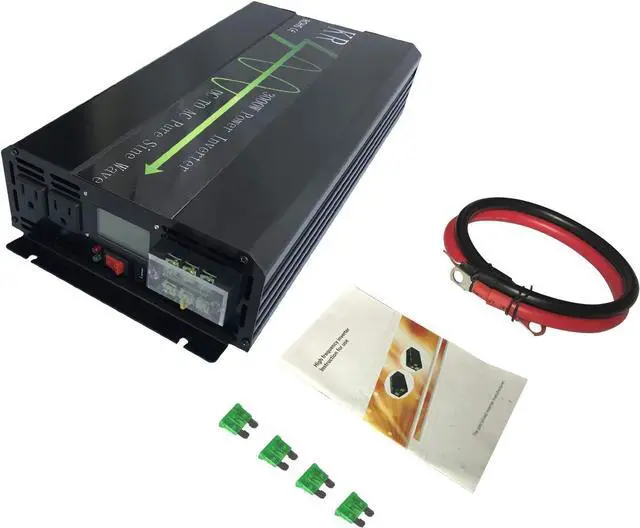 - What you get: A 3000 watt pure sine wave inverter, a instruction manual, 2ft Battery Cables (black and red), a friendly and patient customer after-service, Spare fuses, 12-Months Warrant
