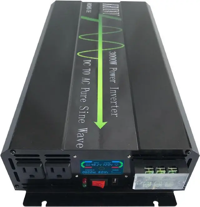 Pure Sine Wave Output: Smooth and perfect pure sine wave output, just the same as home power/city power, Provide max 3000 watt continuous power and 6000 watt peak power at 60Hz frequency, power your 110v 120v ac appliance with a 48v power battery bank (battery voltage 40v to 60v is acceptable)