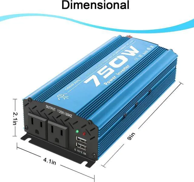 Well-design with compact size, light weight, high efficiency and can be placed inside of the pocketsfalseThe converter is suitable for road trips, camping, and outdoor work. It can also supply power to lights, routers, fans by connecting deep cycle batteries during power outages. false- Provides 750 watts continuous power, 1500 watts surge power to charge your multiple electronic devices on the go