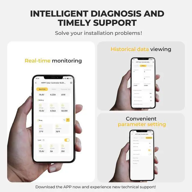 ACTIVE SHIELD: Certified by CE and RoHS. BougeRV 40A MPPT renewable energy controller features a dual MOS circuit to prevent the reverse current and reduce the heat in operation. With 6 protections, over-temperature, open-circuit, short-circuit, overload, polarity reverse prevention circuit, flow backward of current protections.