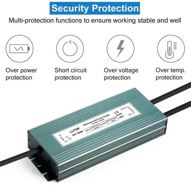 - [Durable Material]: Aluminum alloy case with this power supply is easier to dissipate heat, The inside of the LED Power Supply is filled with waterproof silicone, making it 100% waterproof and dustproof, while protecting the internal electronic components from being crushed by external force