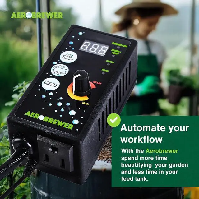 - IMPROVED FARMING EFFICIENCY: The AEROBREWER by Aeromixer improves farming efficiency with its motor speed controller and temperature control switch. By offering precise control over both motor speed and temperature, the electronic speed controller ensures optimal brewing conditions for compost tea, leading to healthier plants and higher crop yields. The power controller reduces manual effort and saves time.