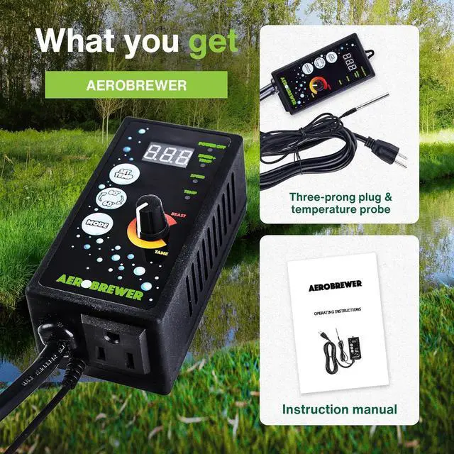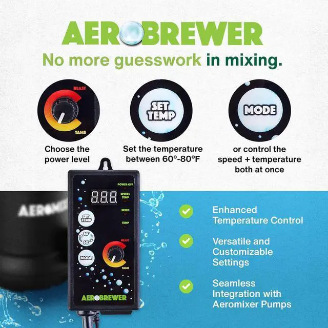 - SEAMLESS INTEGRATION WITH AEROMIXER PUMPS: The AEROBREWER by Aeromixer integrates easily with any Aeromixer pump, offering a simple and efficient setup. The power controller with variable speed switch and a temperature switch eliminates the need for additional equipment. The smart temperature controller and thermostat switch ensure smooth integration with existing Aeromixer pump systems, optimizing your compost tea brewing process with consistent results.