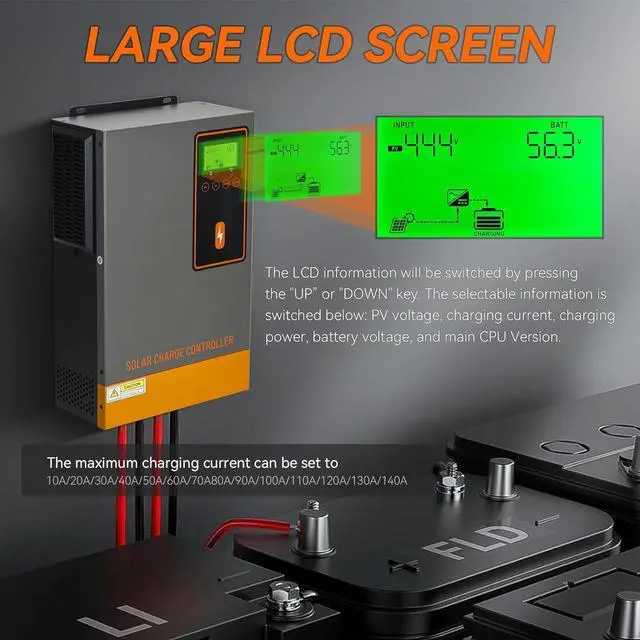 - Compatible with Multiple Type Batteries: 140amp solar charge controller compatible with a variety of 48V batteries (Lead-acid and lithium, User