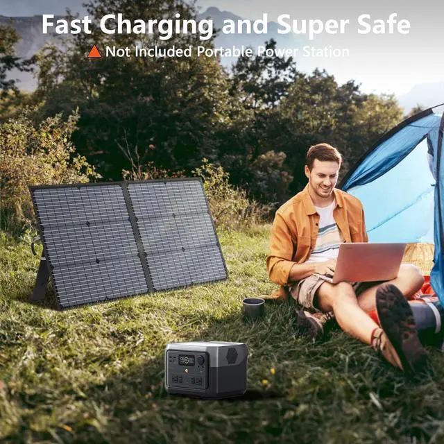 - Easy to installPortable solar panel for power station is equipped with professional solar system output interfaces, plug and play. The 100 watt solar panel charger features a lightweight design, once unfolded, 2 kickstands allow for easy positioning on any flat surface to give you instant charge from sunlight