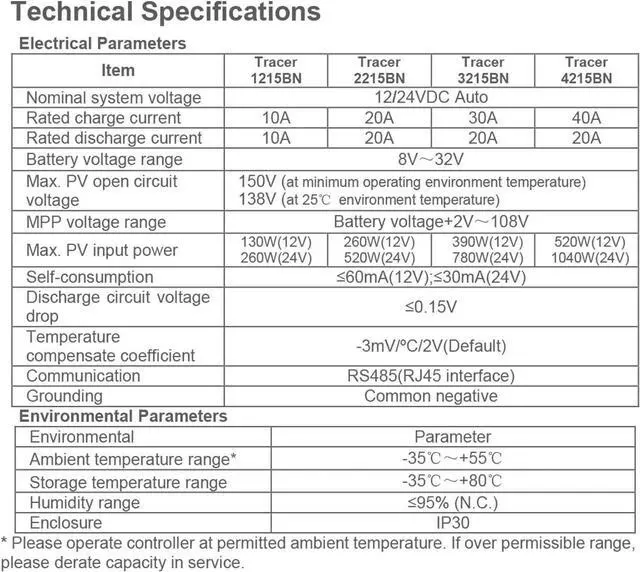 Solar Panel Charge Regulator with RS485 interface, it can be monitored by cellphone APP (eBox required), PC Software and MT50 remote meter. available to meet various communication requirements in different situations. falseMppt Solar Regulator can be widely used for various applications, e. g. solar RV, household system and industrial field monitoring, etc. false- Advanced MPPT (maximum power point tracking) technology, tracking efficiency no less than 99.5 %, maximum conversion efficiency of 98%.