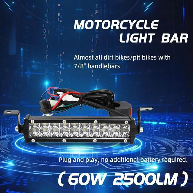 - EASY TO USE - The dirt bike LED light bar does not require drilling and additional modifications. It can be installed directly on the handlebar when off-road and can be removed during racing. Easier to install and use than traditional headlights. Plug and play without additional batteries. (60W 2500Lm)