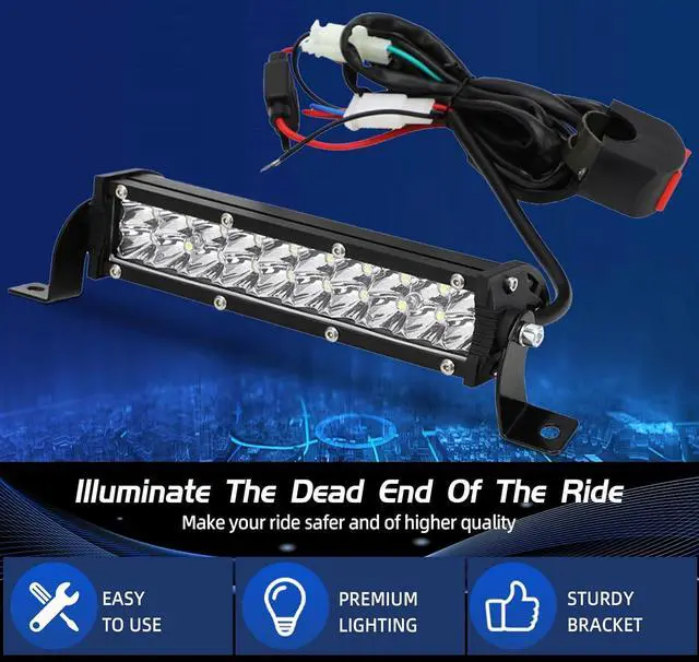 - PREMIUM LIGHTING - The dirt bike light bar has 20 premium LED bulbs to provide super brightness for longer distances and wider light range, illuminating every dead end while riding. Make your riding safer and of premium. Fully enjoy the fun of off-road.
