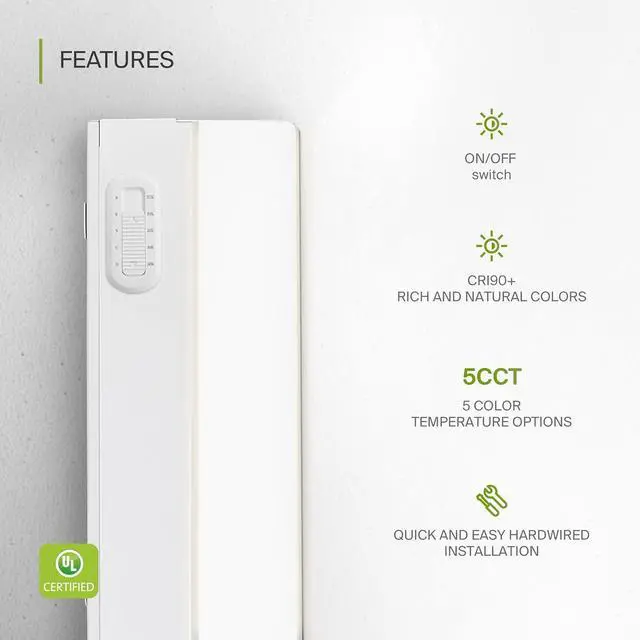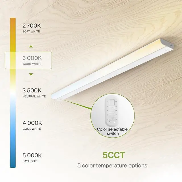 - 5 COLOR TEMPERATURES - Our under-counter light fixtures have a slide switch that allows you to select a 2700K soft white, 3000K warm white, 3500K neutral white, 4000K cool white, or 5000K daylight color temperature. The brightness is up to 2087 lm