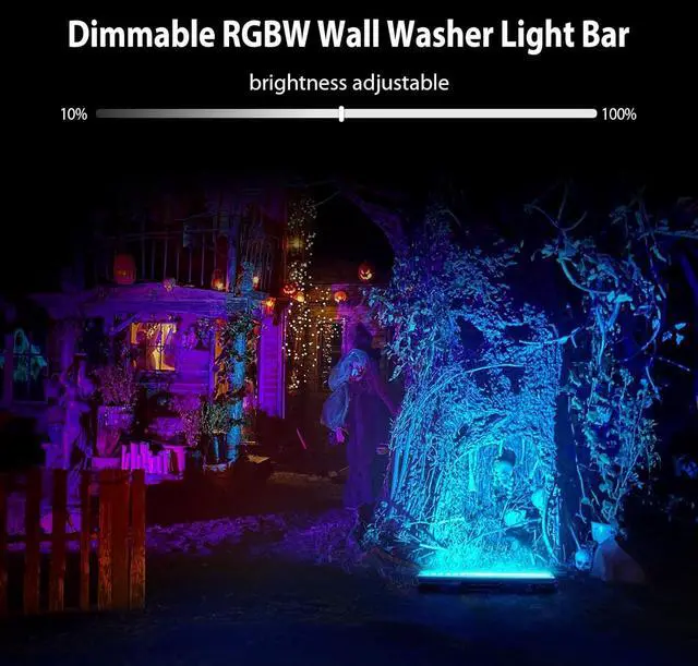 Multicolor & Wide Application: The RGBW wall washer light bar offers 16 colors (RGBs + 5700K) and 4 color-changing modes, you can create a music light show by cycling through the flash, strobe, fade, and smooth buttons on the remote. 0-100% dimmable brightness and dynamic mode speed adjustable. Ideal for decorating and lighting projects in commercial and residential settings, such as building walls, hotels, restaurants, shops, bars, concerts, parties, bridges, billboards, landscapes, stages, special events, and more
