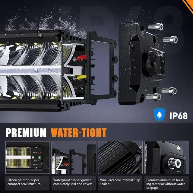 - Premium Durability IP68 waterproof rated, powerful to withstand any harsh environments and weather conditions. Solid built in quality 6063 and ADC12 aluminum housing and thick heat shrink shell, efficiently accelerate heat dissipation and maintain a safe temperature to ensure stable lighting output as well as lighting durability